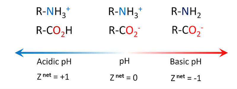 如下文所示,pH 依賴性將取決于表面化學性質;對蛋白質而言,常見的可滴定基團是各種氨基酸的側鏈。常見的酸性氨基酸包括谷氨酸和天冬氨酸,它們都含有羧基側鏈,而堿性氨基酸如組氨酸、賴氨酸和精氨酸則含有胺基側鏈。